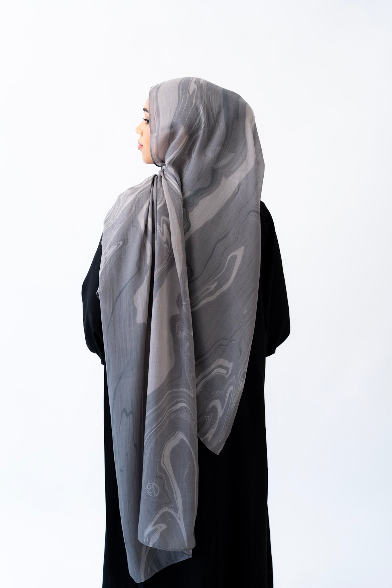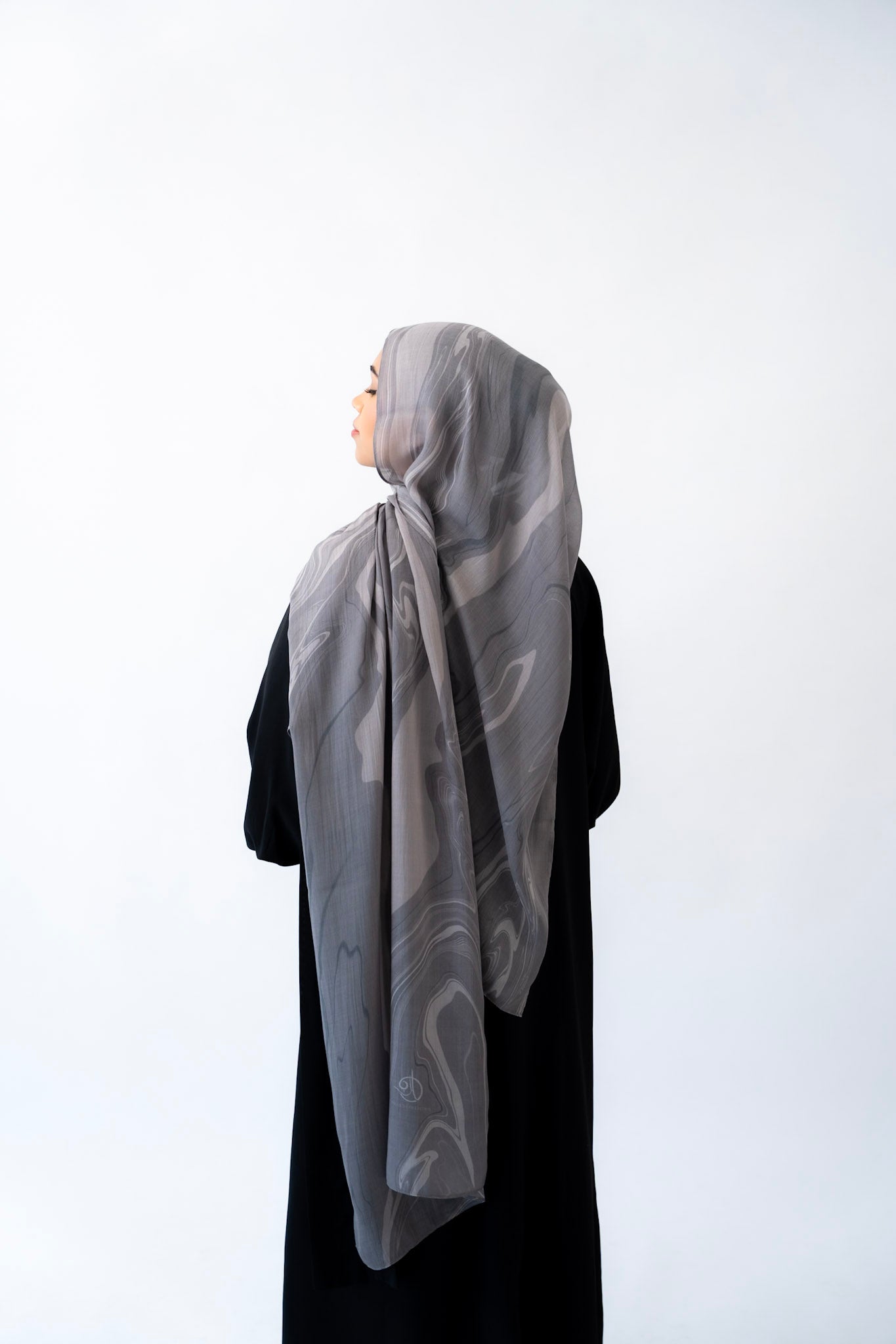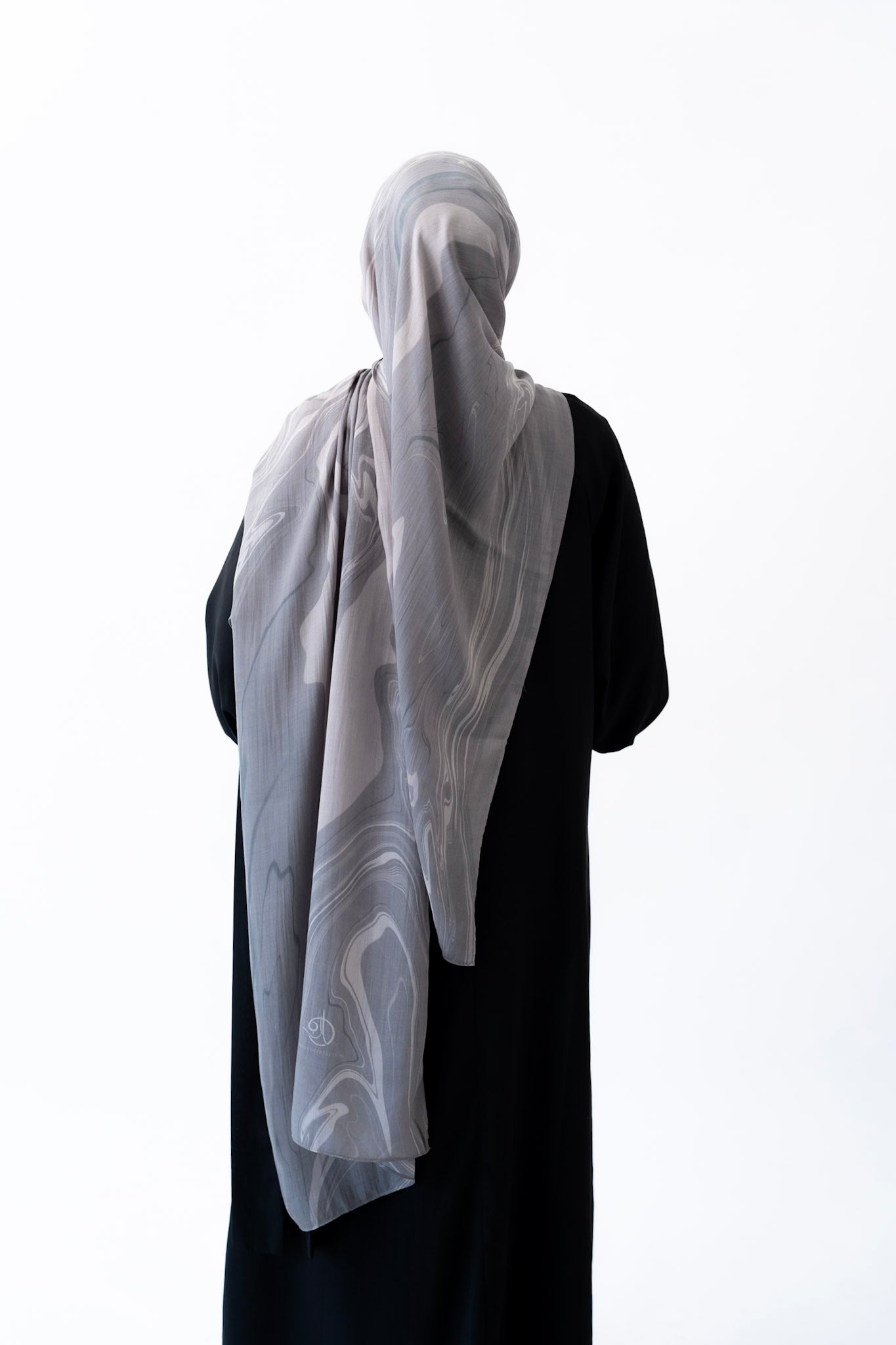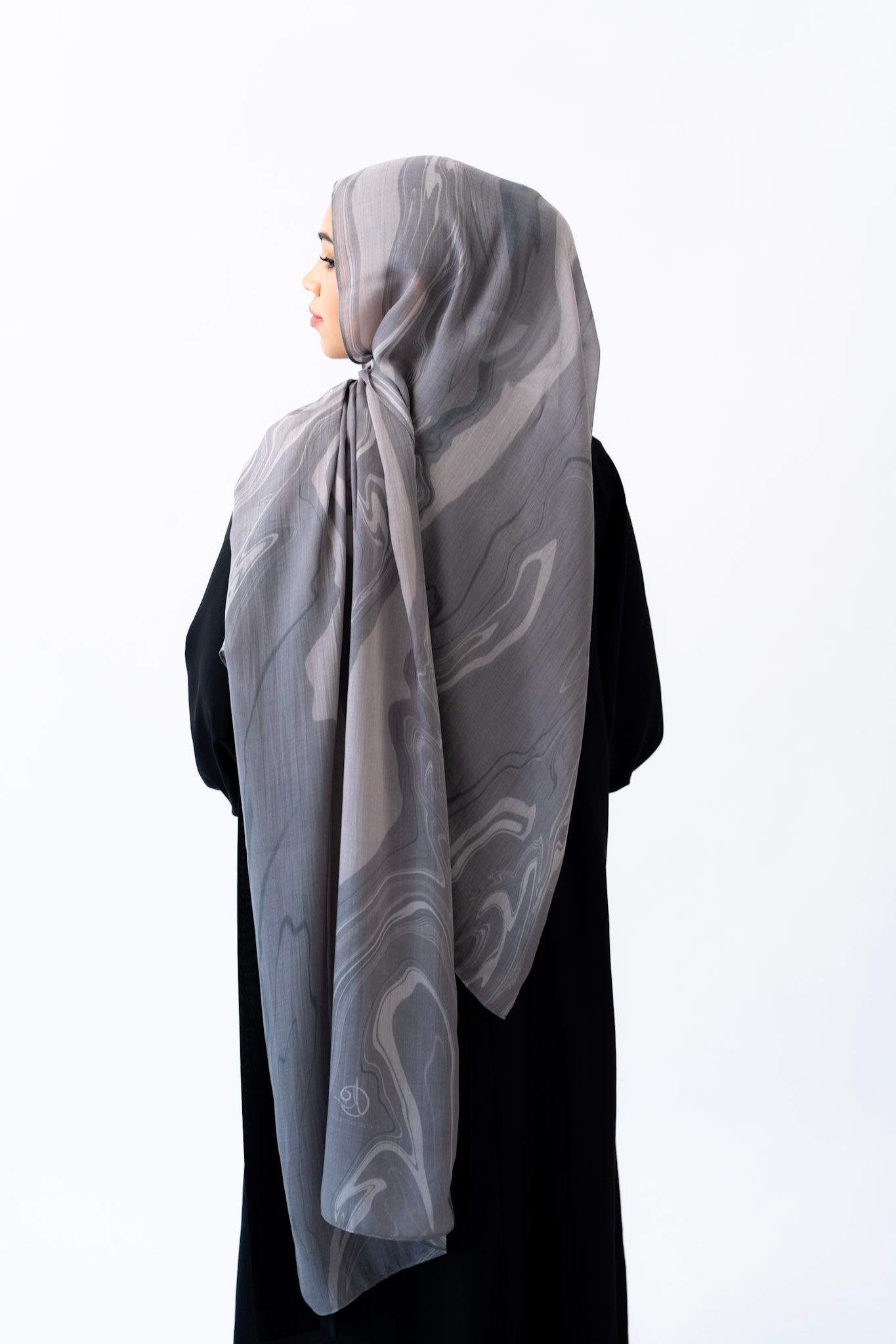 Inspired by the layered veining of Arabescato marble, this hijab is cool-toned, elegant, and quietly powerful. Its stormy hues and hand-drawn artistry make it a refined choice for both everyday wear and elevated occasions.