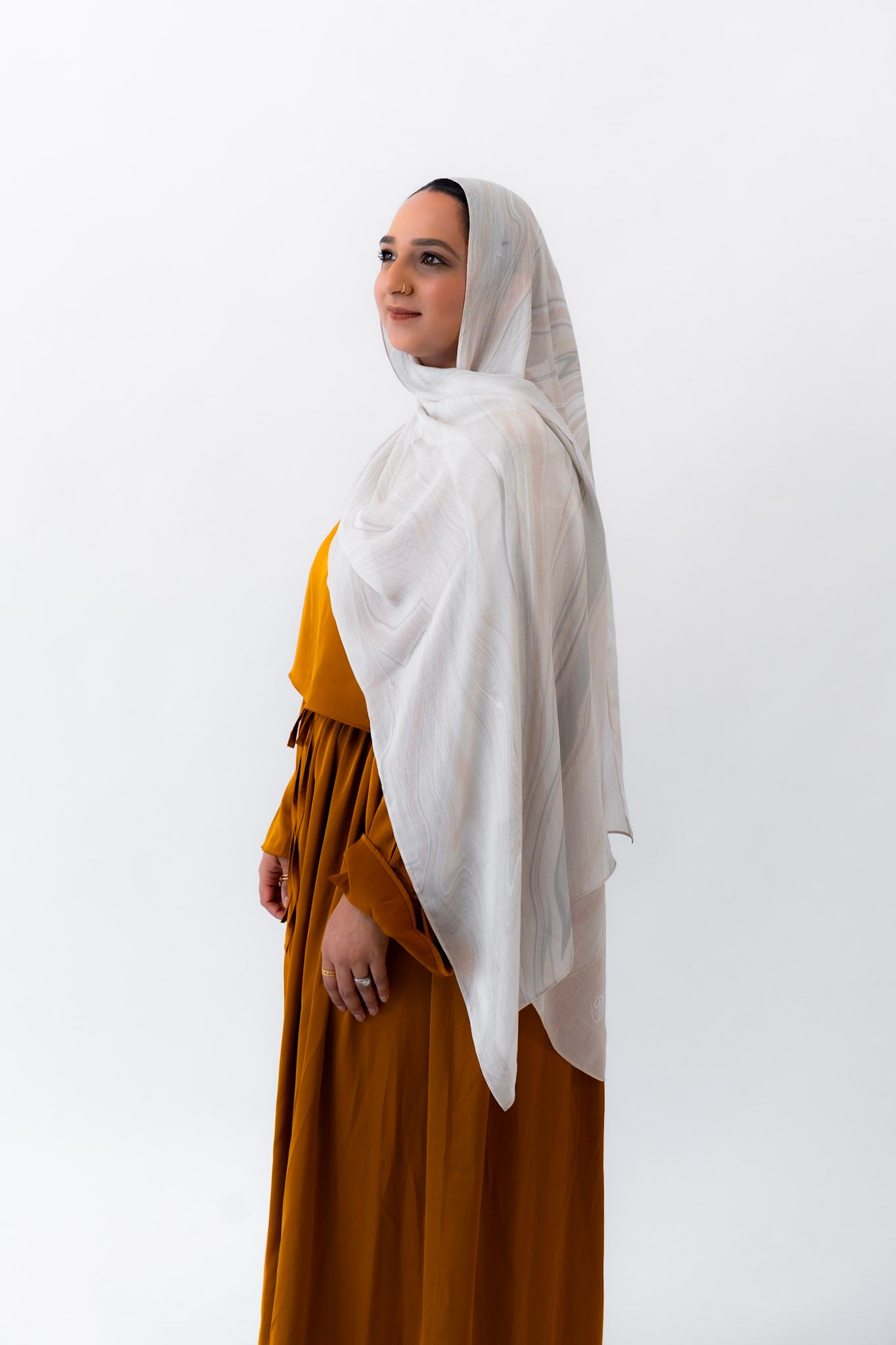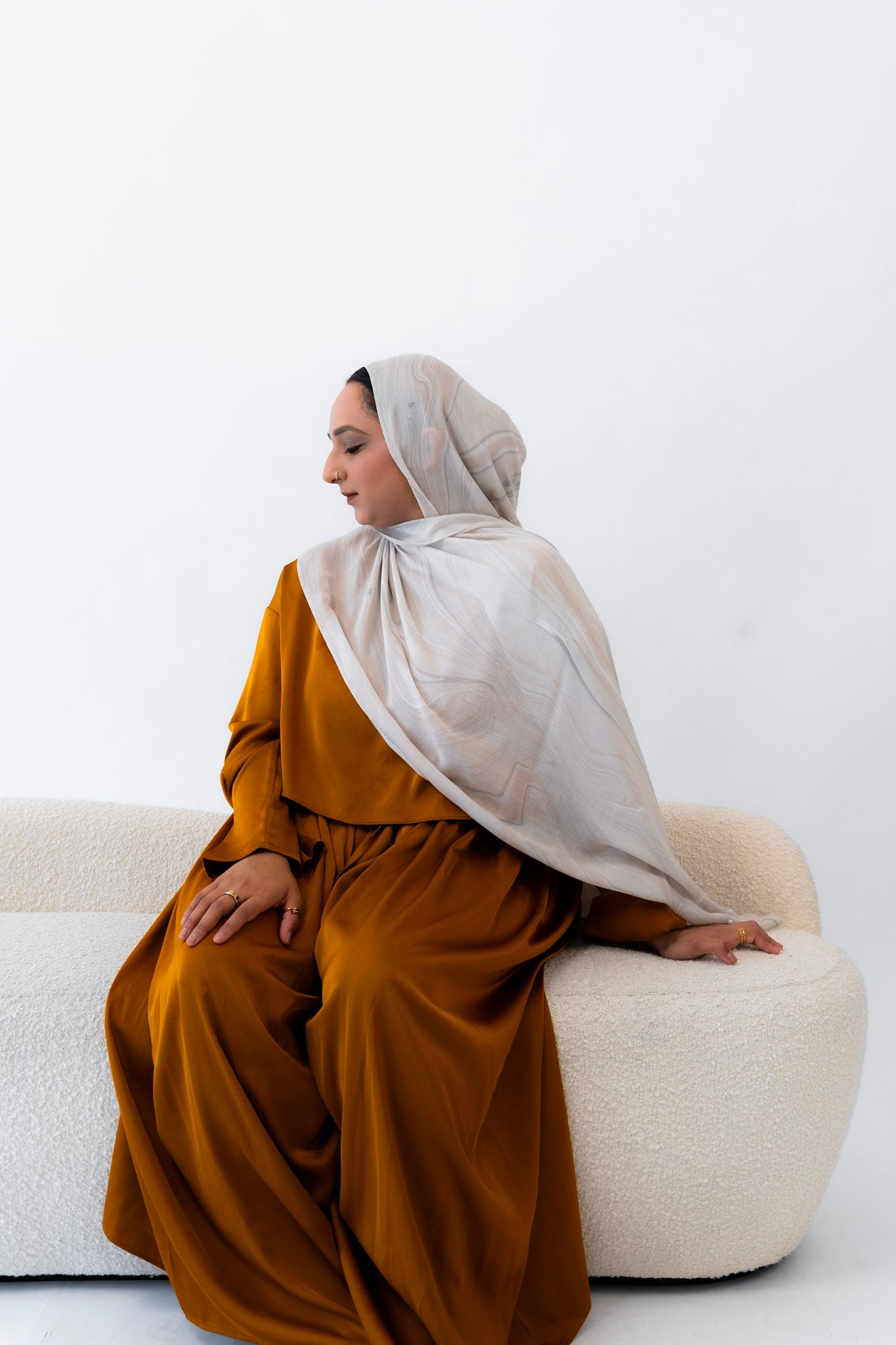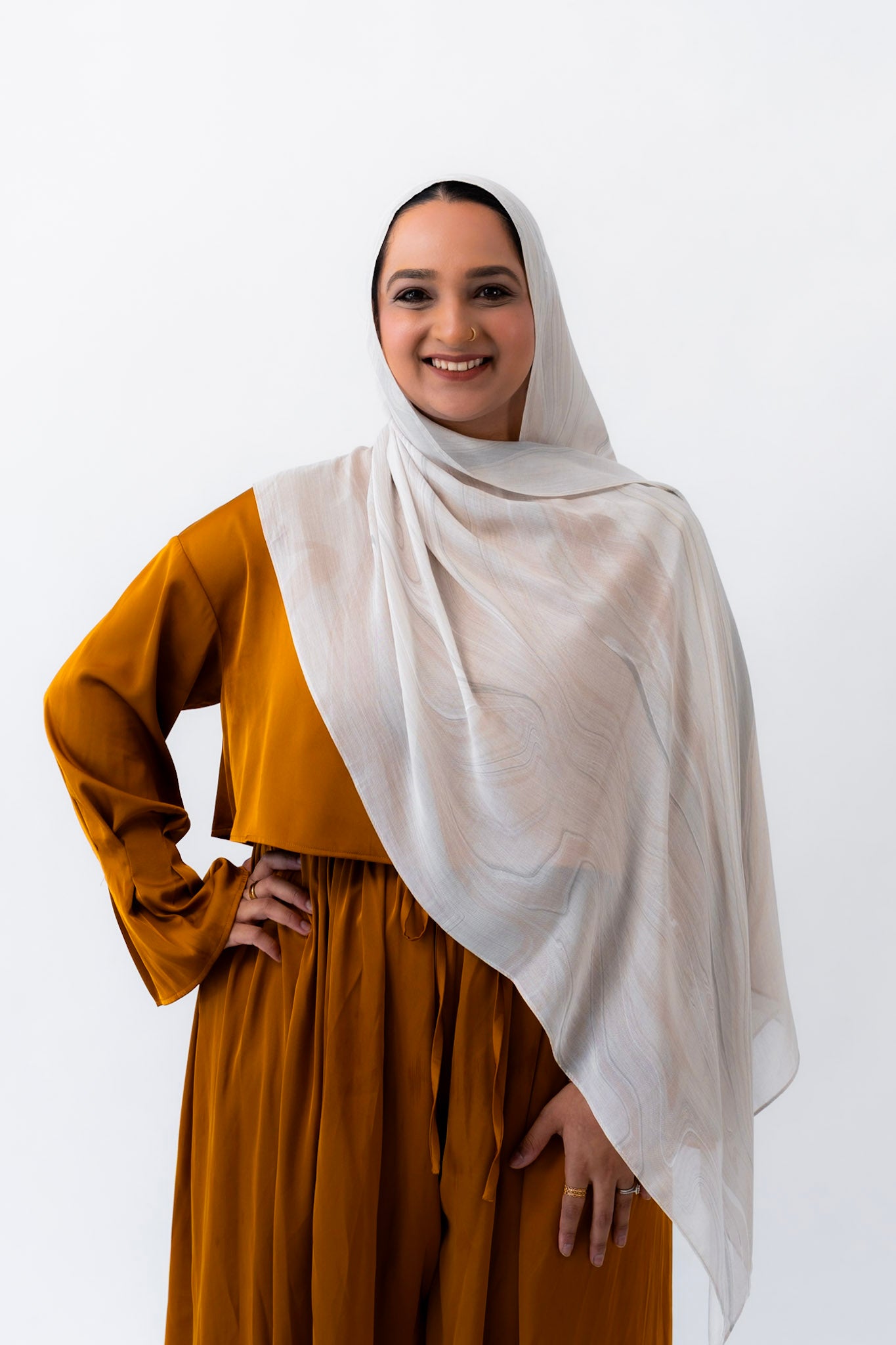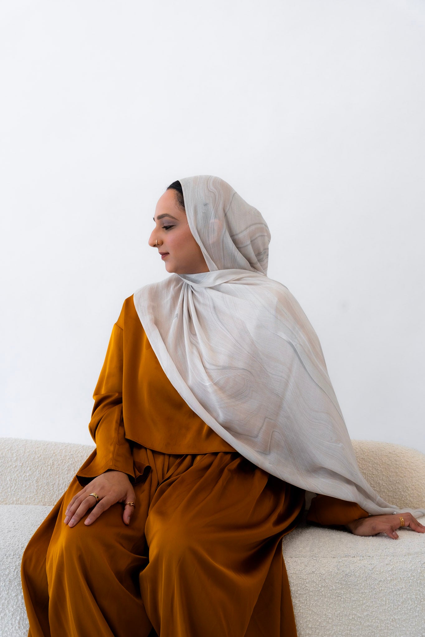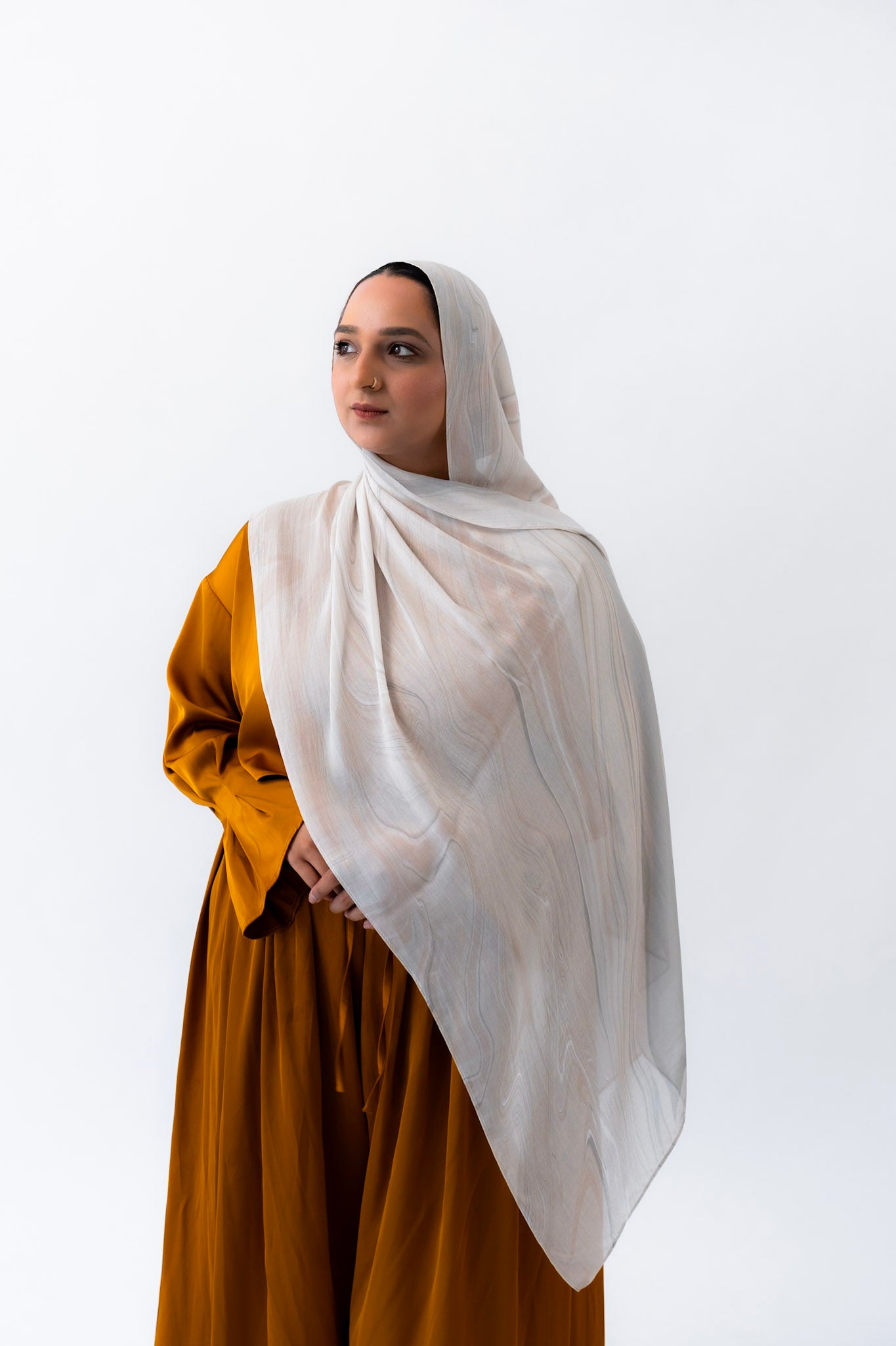 Subtle, warm, and timeless — this hijab channels the creamy softness of natural travertine. With gentle veining and beige undertones, Travertino captures the understated luxury of ancient Roman architecture.