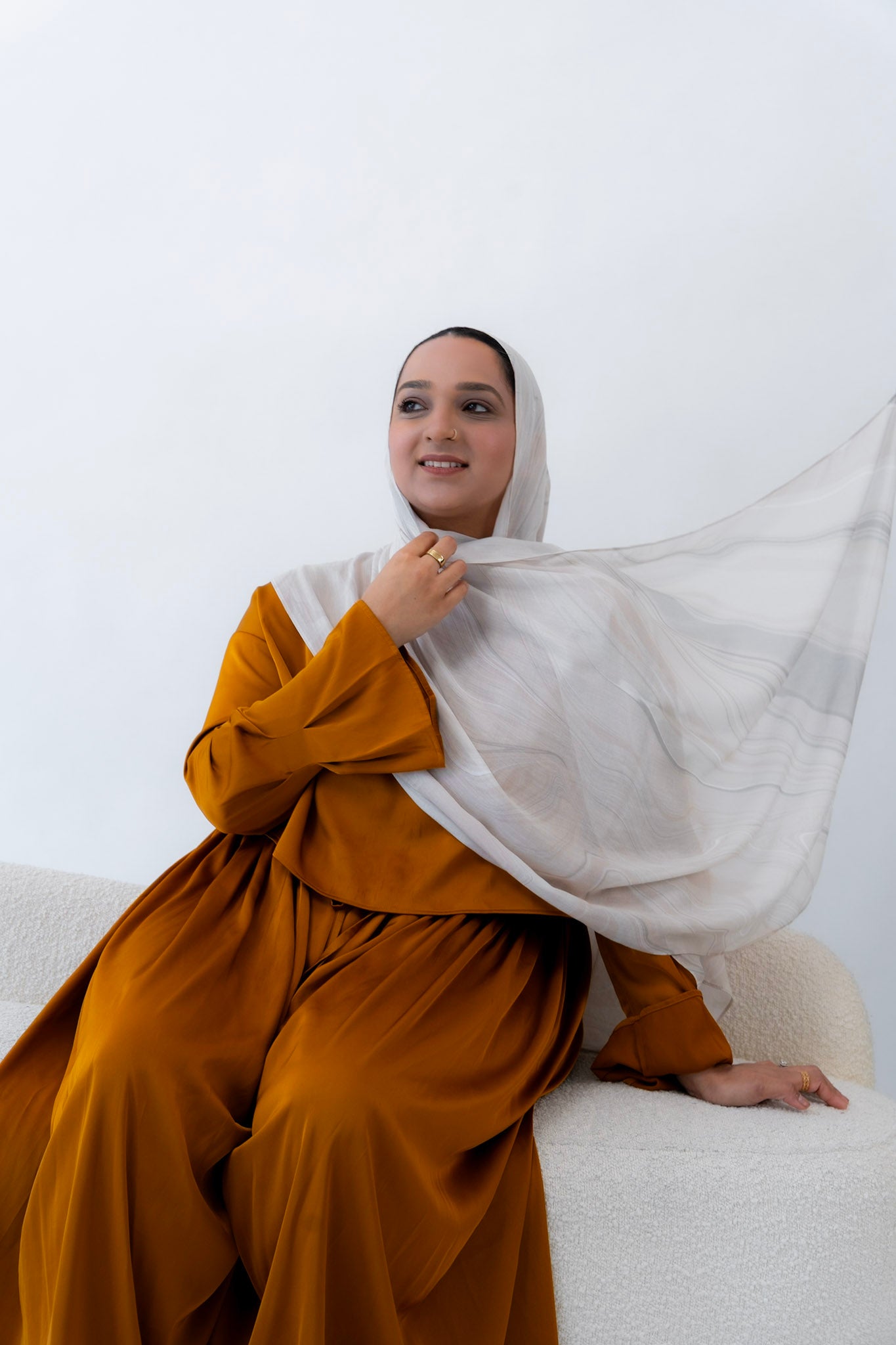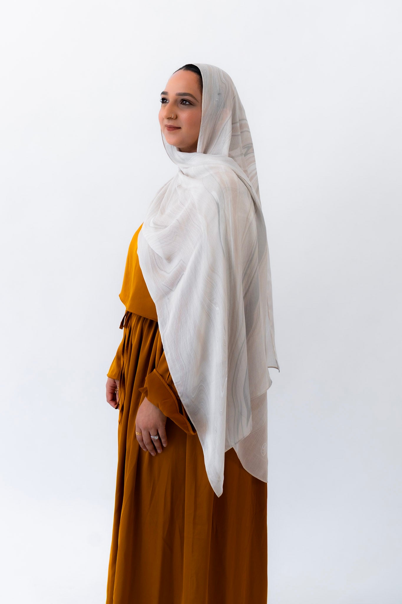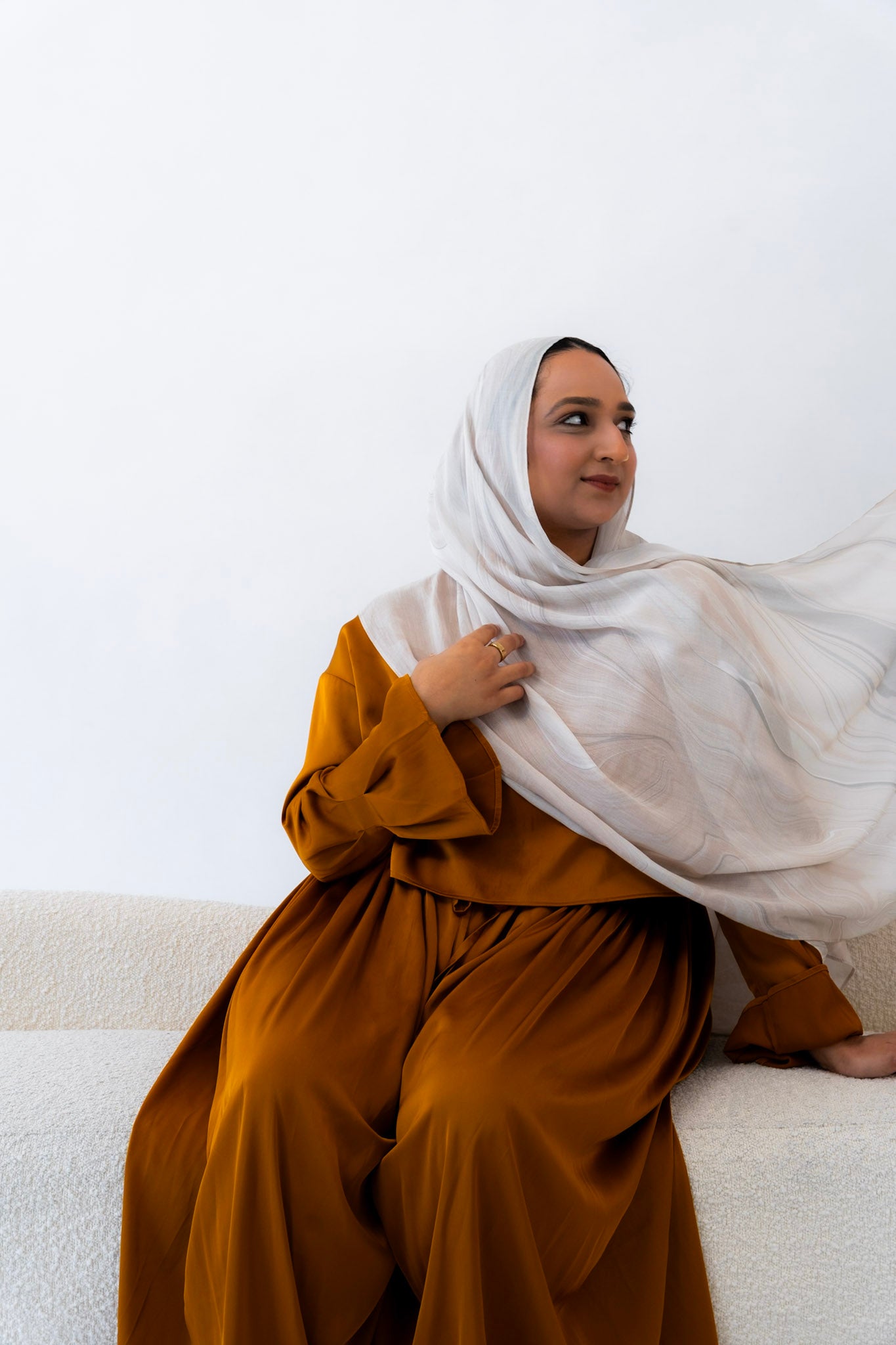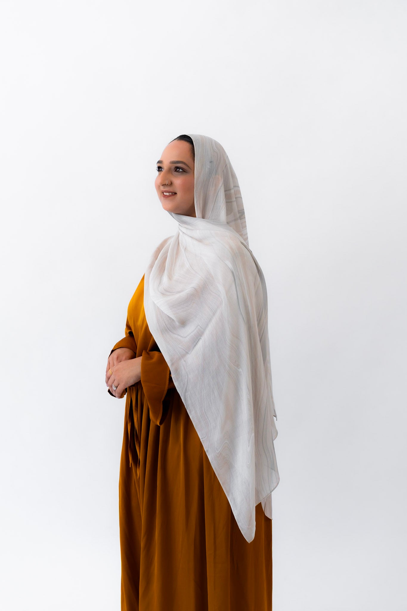 Subtle, warm, and timeless — this hijab channels the creamy softness of natural travertine. With gentle veining and beige undertones, Travertino captures the understated luxury of ancient Roman architecture.