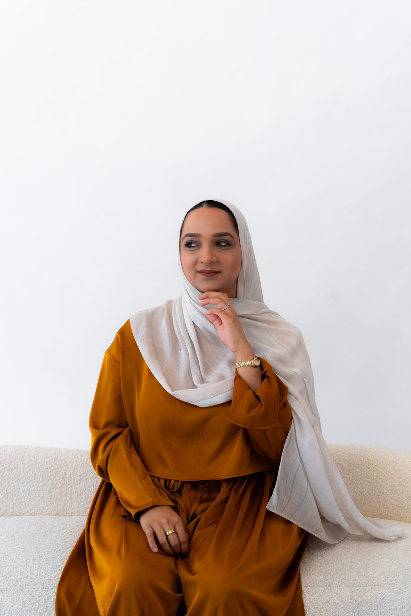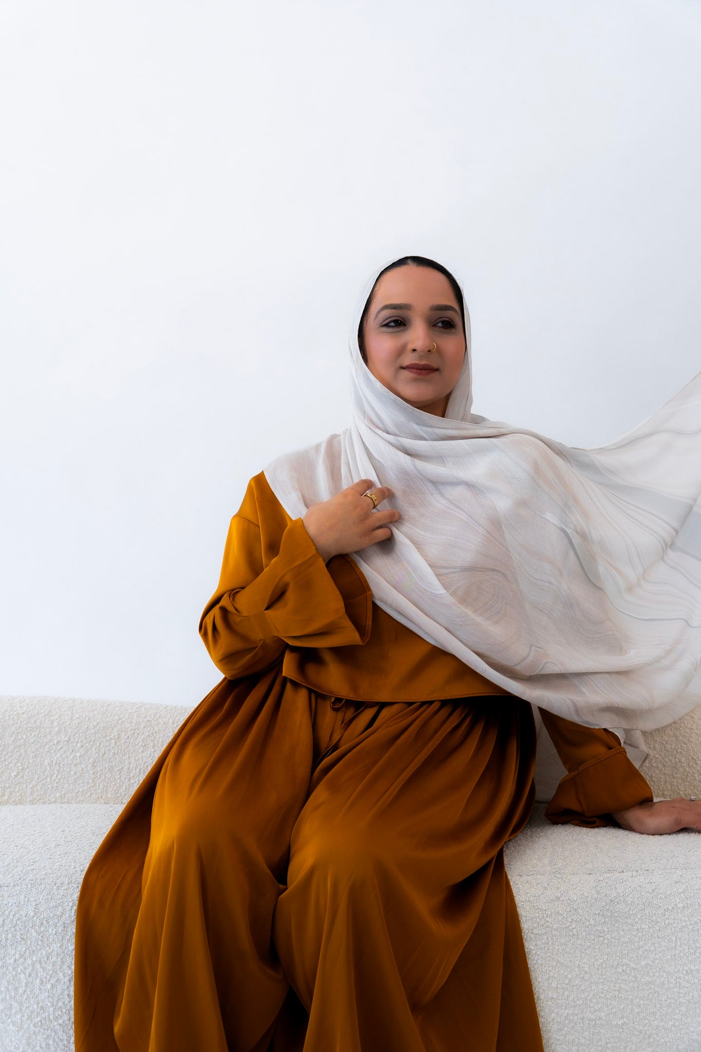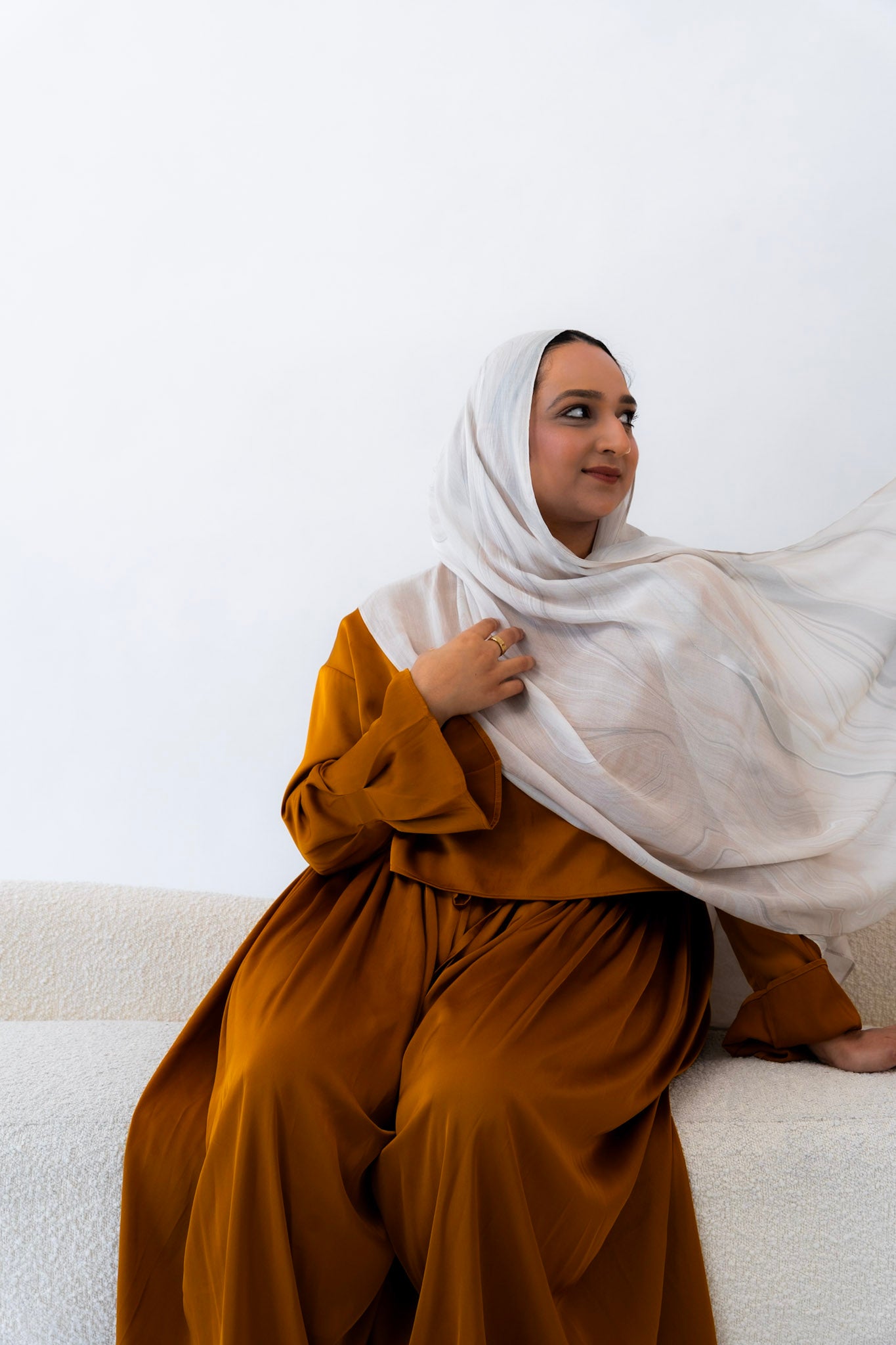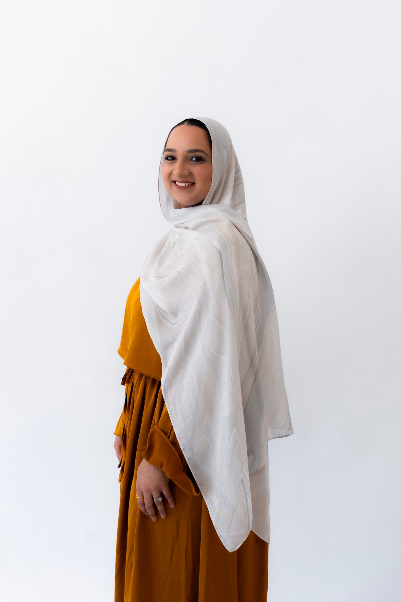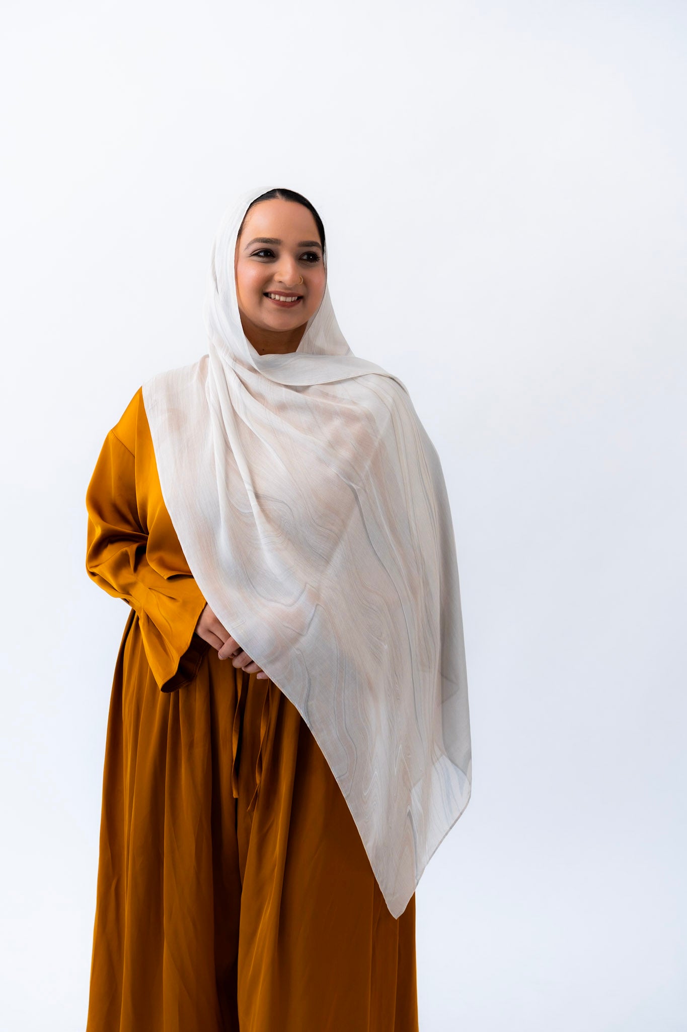 Subtle, warm, and timeless — this hijab channels the creamy softness of natural travertine. With gentle veining and beige undertones, Travertino captures the understated luxury of ancient Roman architecture.